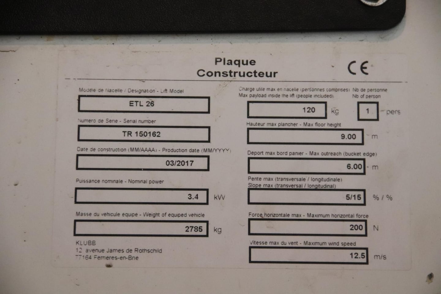 2.3 dCi HOOGWERKER HUBARBEITSBÜHNE NACELLE TIME ETL 26