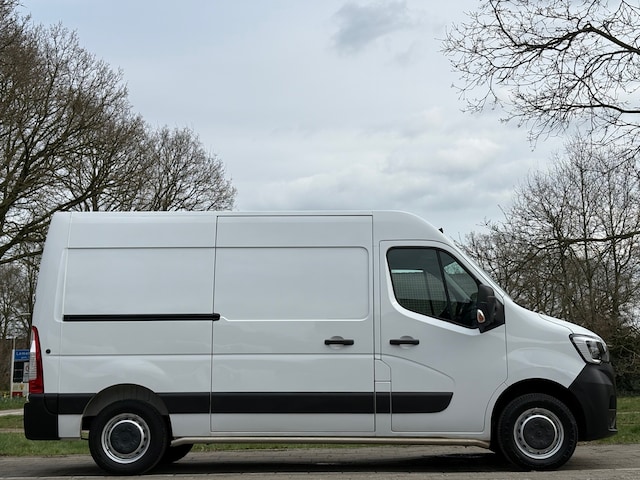 Renault Master T35 2.3 dCi 135 L2H2, afkomstig van de eerste eigenaar. Mooi uitgevoerd met: drie zitplaatsen, parkeersensoren, airconditioning, radio met telefoonaansluiting, afgetimmerde laadruimte, NAP..