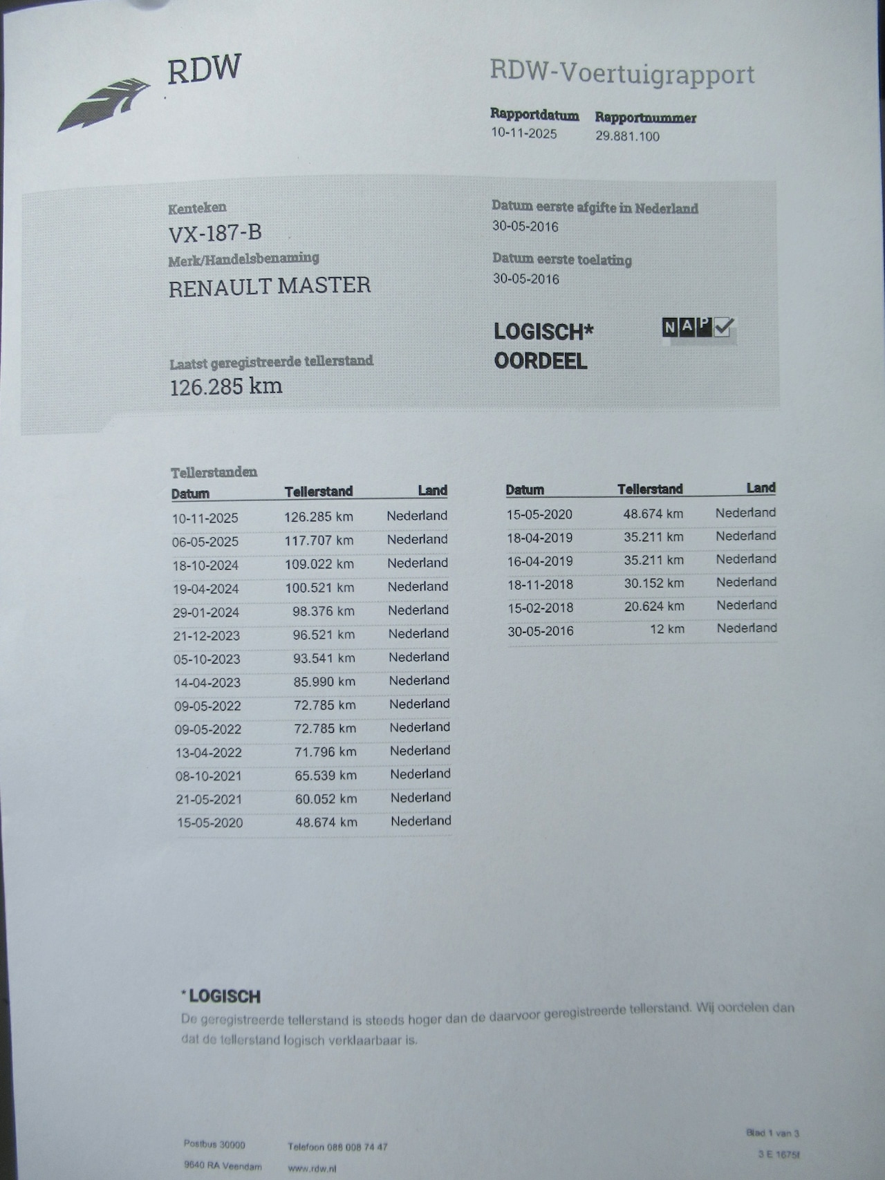 | Kilometerstand | 126.285 km |