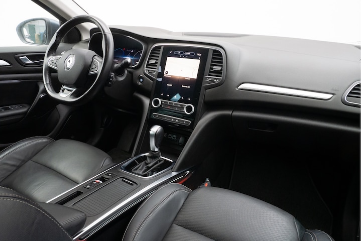 Het digitale dashboard is een perfecte bijrijder. Alles benodigde informatie is permanent zichtbaar of opvraagbaar. De achteruitrijcamera maakt inparkeren gemakkelijker dan ooit. Het audiosysteem met DAB-ontvangst en het full map navigatiesysteem bedient u veilig met knoppen op het stuur. De automatische airconditioning zorgt onder alle omstandigheden voor een prettige temperatuur. Het hoort bij een intelligente auto als deze dat hij zelf in staat is om zijn omgeving in de gaten te houden. Dat doet deze Renault met een automatisch inschakelbare verlichting en een regensensor. Ook is de Renault uitgerust met: cruise control, keyless entry, automatisch dimmende binnenspiegel, lederen stuur, boordcomputer en lederen versnellingspook.