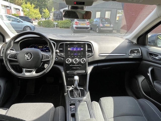 Het digitale dashboard rekent mee, denkt mee en rijdt mee. Alle info overzichtelijk in beeld, overal. Het full map navigatiesysteem en het audiosysteem (met DAB-ontvangst!) bedient u met knoppen op het stuur. Met de automatische airconditioning selecteert u de gewenste temperatuur. Het systeem doet de rest. Parkeerplekken worden er niet ruimer op. Maar met de aanwezige parkeersensoren krijgt u deze Renault Mégane Estate zonder problemen op z'n plaats. Natuurlijk is een complete auto als deze ook voorzien van sensoren die de omgeving in de gaten houden. Deze Renault heeft niet alleen een automatisch inschakelbare verlichting aan boord, maar ook een regensensor. De uitrusting van deze auto is met cruise control, keyless entry, automatisch dimmende binnenspiegel, lederen stuur, boordcomputer en lederen versnellingspook behoorlijk compleet.