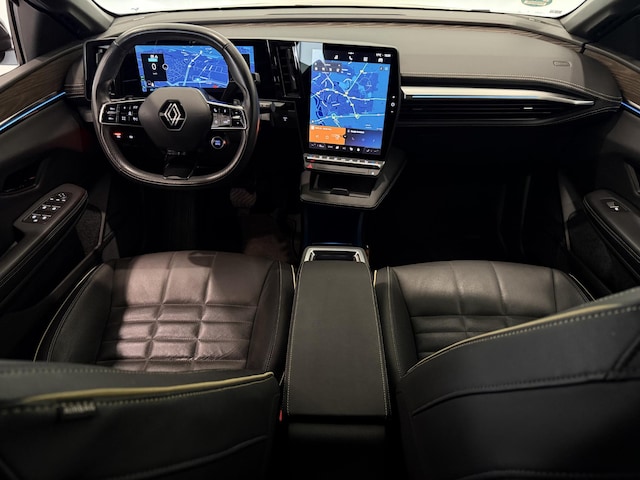 Elektrisch vermogen of onderscheidend vermogen? De Renault Megane E-Tech heeft het allebei in overvloed. De batterijtechniek heeft de afgelopen jaren enorme vooruitgang geboekt, zodat u met deze auto op een volle acculading echt ver kunt komen. En als u de auto 's avonds aan de lader koppelt, is hij de volgende dag weer helemaal vol. Binnenin zien we een fraai afgewerkt lederen interieur. In de verwarmbare voorstoelen zitten is elke keer een welkom gevoel. De massagefunctie doet daar nog een schepje bovenop. Al is het nog zo fris, koude handen zijn verleden tijd door het verwarmd stuurwiel. In deze auto profiteert u onder andere ook van: 20 inch lichtmetalen velgen, Full LED koplampen, dakspoiler, extra getint glas, in delen neerklapbare achterbank en LED-achterlichten.