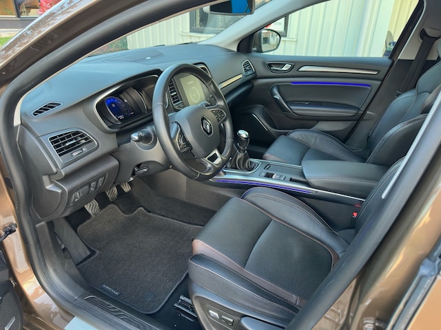 Bij het ontwerpen van de Renault Mégane Estate stonden uw comfort en uw veiligheid centraal. De aandrijving van deze Renault wordt verzorgd door een viercilinder motor en een handgeschakelde zesversnellingsbak. Lederen bekleding is in deze rijk uitgeruste auto ook aanwezig. Ga samen met uw bijrijder lekker zitten in de verwarmbare voorstoelen en laat jullie bloedsomloop stimuleren door de massagefunctie. Stramme vingers krijgen 's winters een VIP-behandeling van het verwarmd stuurwiel. Ook 17 inch lichtmetalen velgen, LED koplampen, extra getint glas, in delen neerklapbare achterbank, LED-achterlichten en verstelbare lendensteunen horen tot de voorzieningen op deze auto.