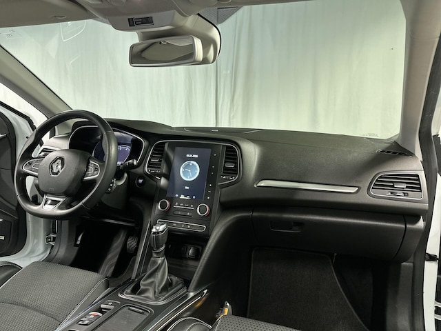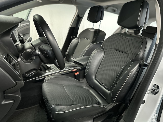 Zoals u mag verwachten van deze Renault Mégane Estate is hij uitgerust met een reeks aan actieve veiligheidssystemen. De actuele snelheidslimiet, een inhaalverbod en andere verkeersborden; de verkeersborddetectie ondersteunt u tijdens elke rit. Deze Renault Mégane Estate is ook behulpzaam als het gaat om een rechte koers. Het Lane-keeping systeem signaleert en corrigeert als u onbedoeld de rijstrooklijnen dreigt te overschrijden. Bij een noodstop gebeurt er heel veel tegelijk: gas los, rempedaal in, kijken, sturen. Dan is het een veilig gevoel dat de Brake Assist uw remactie tot het maximum oppept. De auto is ook uitgerust met dodehoekdetectie, hill hold functie en bandenspanningcontrolesysteem.