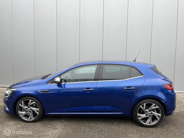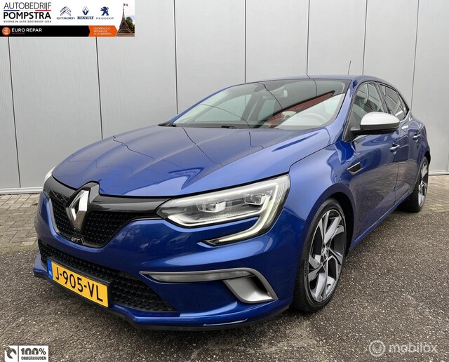 Sportieve Renault Megane, het betreft een HB in de GT uitvoering met de 205 PK sterke 1.6 TCE benzine motor i.c.m. de 7-Traps Automatische Versnellingsbak, deze Megane is voorzien van o.a.; Sport Interieur, Sport Onderstel, Fabrieks Navigatie, Head Up display, enz.