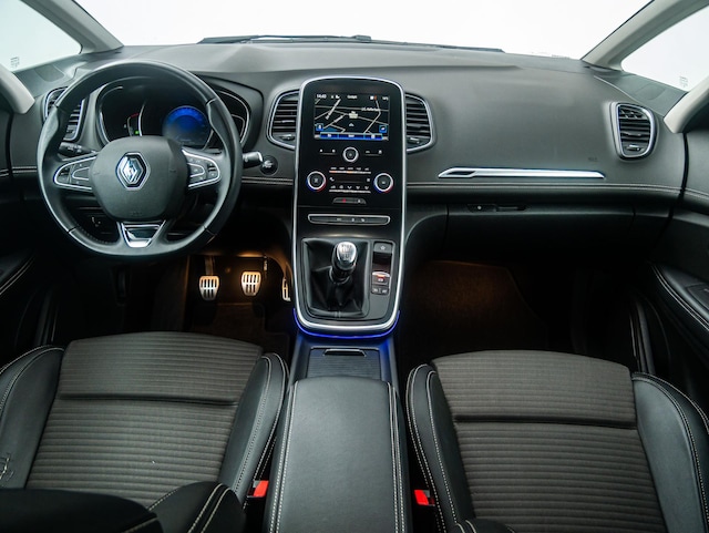 De Scénic is rijk uitgerust met tal van opties zoals onder andere: 20" Inch lichtmetalen velgen, 6-versnellingen, Achteruitrijcamera, Afwijkende dakkleur, Automatische parkeerfunctie, Automatische verlichting, Bluetooth, Climate control, Cruise control, Dodehoekwaarschuwing, Elektrische handrem, Elektrisch inklapbare buitenspiegels, Half leder/stof interieur, In hoogte verstelbare stoel, Isofix, Keyless entry, Lane assist, Navigatie, Parkeersensoren voor + achter, Regensensor, Sportstoelen, Stuurwiel-bediening, Trekhaak, Zonnescherm etc..