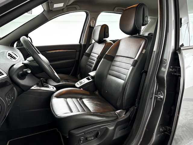 Electronic climate control regelt volautomatisch de temperatuur. U kiest de gewenste temperatuur en het systeem doet de rest. Ook lekker handig is de audiobediening op het stuur. Het hoort bij een intelligente auto als deze dat hij zelf in staat is om zijn omgeving in de gaten te houden. Dat doet deze Renault met een automatisch inschakelbare verlichting en een regensensor. Stel de cruise control in op de gewenste snelheid en u rijdt comfortabel en zuinig. Met keyless entry kunt u de portieren ontgrendelen terwijl de autosleutel in uw jas, broekzak of tas zit. En dan is deze auto ook nog eens voorzien van lederen stuur en lederen versnellingspook.