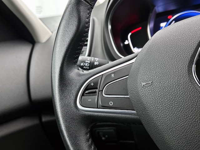 Snelheid, brandstofinfo, noem maar op. Het digitale dashboard houdt u permanent op de hoogte. Goed en overzichtelijk. Altijd achter zicht, nooit meer nekkramp! De achteruitrijcamera maakt het supermakkelijk. Laat u onderweg niet afleiden, de bediening van het audio-installatiesysteem en ook het full map navigatiesysteem gaat met knoppen op het stuur en met spraak. Natuurlijk is de audio-installatie voorzien van DAB-ontvangst. Met de automatische airconditioning selecteert u de gewenste temperatuur. Het systeem doet de rest. De automatisch inschakelbare verlichting en regensensor zorgen dat onderweg automatisch de verlichting en de ruitenwissers worden ingeschakeld. Daarmee nemen ze u veel werk uit handen. De uitrusting van deze Renault is met cruise control, keyless entry, lederen stuur, usb-aansluiting, centrale deurvergrendeling met afstandsbediening en boordcomputer behoorlijk compleet.