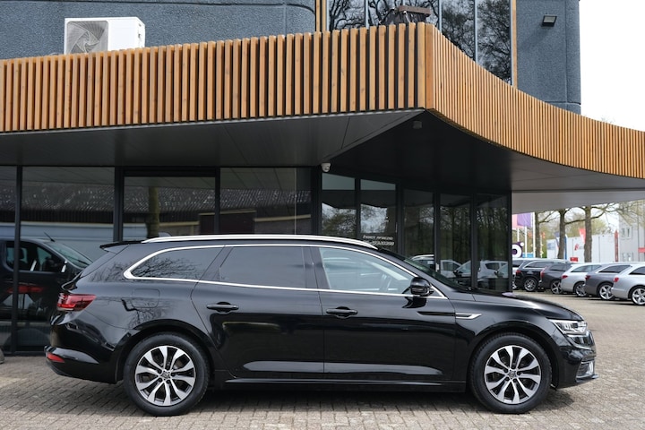 Nette, goed onderhouden en rijk uitgeruste Renault Talisman Estate 1.3 TCe Business Zen uit 2022. Deze ruime stationwagen is o.a. voorzien van: Apple Carplay/Android Auto, achteruitrijcamera, dynamische knipperlichten, LED koplampen + achterlichten, stoelmassage, DAB, keyless en trekhaak. Uitgevoerd in ‘noir etoilé’ met zwart stoffen comfortinterieur.