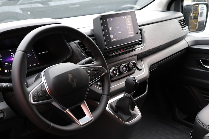 Zoals u mag verwachten van deze Renault Trafic is hij uitgerust met een reeks aan actieve veiligheidssystemen. In het instrumentarium laat de verkeersborddetectie de actuele verkeersborden zien. Het Lane-keeping systeem zorgt voor een automatisch constante positie binnen de rijstrook. Afdwalen is uitgesloten. Vermoeidheidsherkenning is een systeem dat met verschillende sensoren tekenen van vermoeidheid bij de chauffeur waarneemt. Deze krijgt tijdig een waarschuwing, wat ongelukken kan voorkomen. Ook helpen het dodehoekdetectie, hill hold functie, autonoom remsysteem en bandenspanningcontrolesysteem, uw rit tot een veilige rit te maken.