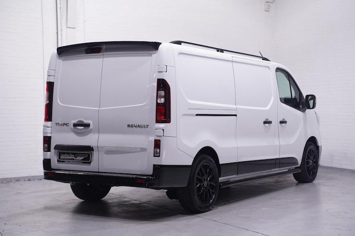 Wat een sportieve Renault Trafic, deze 150 pk L2 voorzien van een Black Style Exterieur pakket met o.a. onderzijde voorbumper, achterbumper, sierlijsten zijkant, spiegelkappen en grille in hoogglans zwart gespoten. Verder voorzien van 18" lichtmetalen velgen zwart met allseason banden, achterspoiler, frontspoiler, dakrails en sidebars zwart. Lenferink's Black&White Edition! Deze Renault Trafic is BPM vrij!
