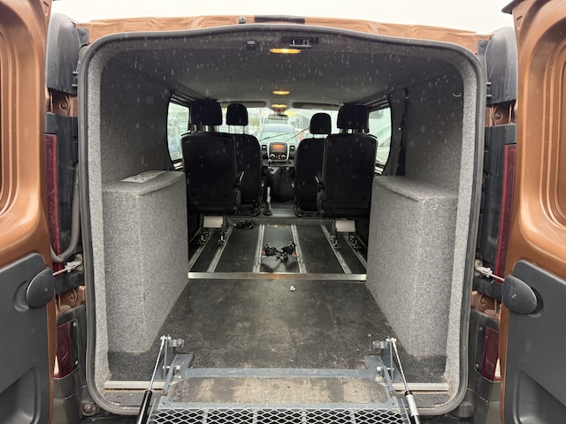 Net neuw binnen: deze mooie complete Renault Trafic 4+1 Rolstoelbus 1.6 dCi T29 L2H1 Comfort Energy uit 2016 welke is voorzien van veel fijne opties zoals o.a. extra getint glas, airconditioning, elektrische ramen en buitenspiegels, audio/mp3 met bluetooth en multi-media, full-map kleurennavigatie, cruise control, parkeersensoren, metallic lak, achteruitrijcamera, 2 schuifdeuren, etc... Daarnaast beschikt deze keurige Opel Vivaro over een volledig aangepaste vloer met lengterails, 2 extra passagiersstoelen, een 4-punts rolstoelfixeersysteem en een opklapbare oprijplaat waarmee ieder type rolstoel of scootmobiel veilig en comfortabel vervoerd kan worden. Heeft u i.p.v. een oprijplaat liever een volautomatische rolstoellift dan kunnen wij dat in onze eigen werkplaats uiteraard voor u verzorgen. Is uw interesse gewekt in deze of een andere rolstoelbus of rolstoelauto? Bel of app dan met 06-27392718 voor meer informatie en maak een afspraak! Indien nodig is een passing en proefrit bij u aan huis geheel vrijblijvend mogelijk. (Meer foto's volgen)