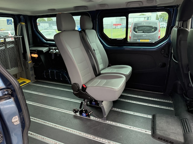 Nieuw binnen: deze mooie complete en zeer nette Renault Trafic 4+1 Rolstoelbus 1.6 dCi T29 L2H1 Luxe Energy uit 2018 met nog maar 99 dkm op de teller welke afkomstig is van de 1e eigenaar. Deze prachtige Trafic L2H1 is uitgerust met veel mooie opties zoals o.a. lichtmetalen velgen, metallic lak, parkeersensoren achter, mistlampen voor, bumpers in kleur, 2 schuifdeuren, extra getint glas, cruise control, airconditioning, multifunctioneel stuurwiel, full-map kleurennavigatie, etc... Daarnaast beschikt hij over een volledig aangepaste vloer met lengterails, 2 verstelbare passagiersstoelen, een 4-punts rolstoelfixeersysteem en een volautomatische rolstoellift waarmee ieder type rolstoel of scootmobiel veilig en comfortabel vervoerd kan worden. Is uw interesse gewekt in deze of een andere rolstoelbus of rolstoelauto? Bel of app dan met 06-27392718 voor meer informatie en maak een afspraak! Indien nodig is een passing en proefrit bij u aan huis geheel vrijblijvend mogelijk.