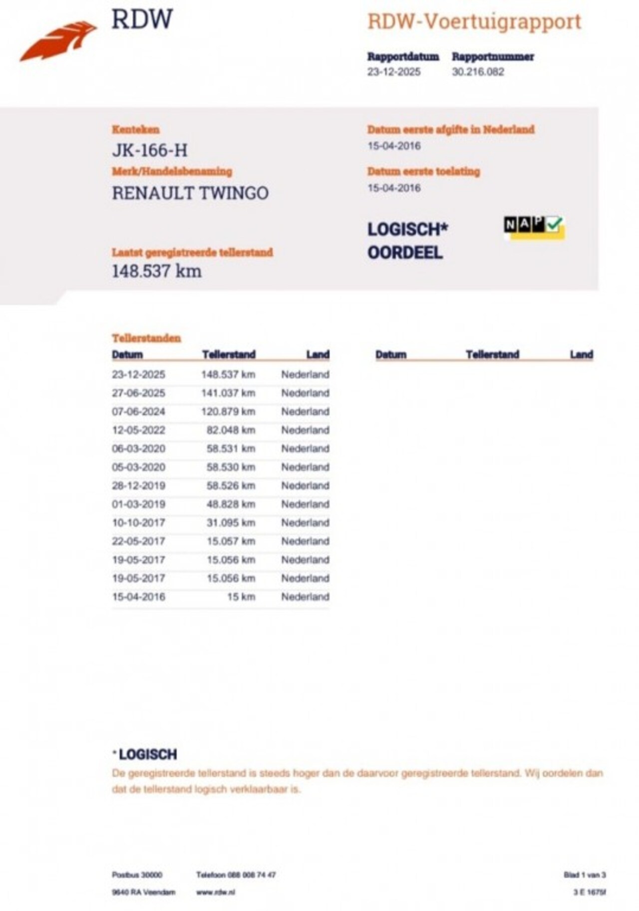 | Kilometerstand | 148.651 km |