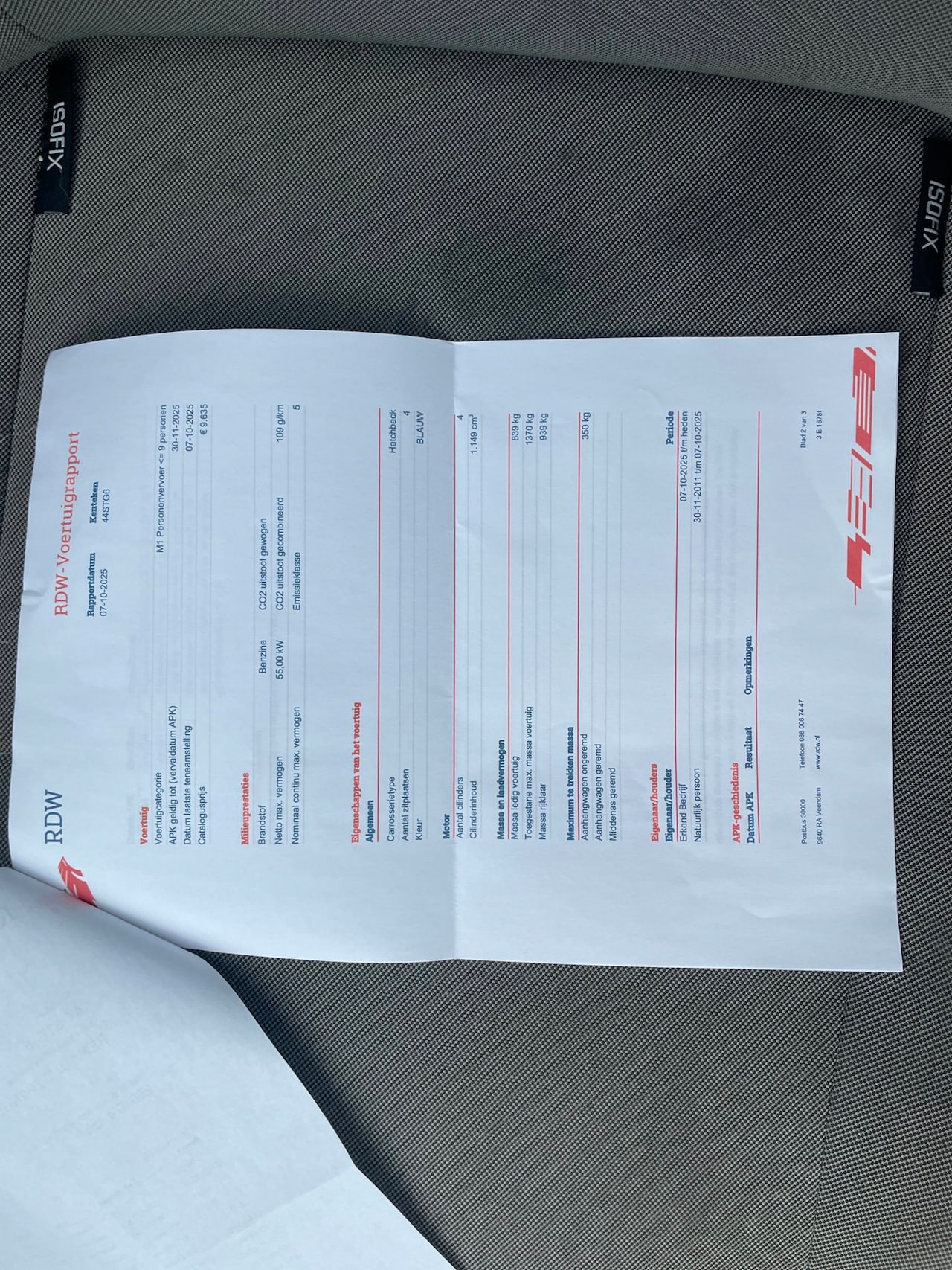 | APK | Bij aflevering |