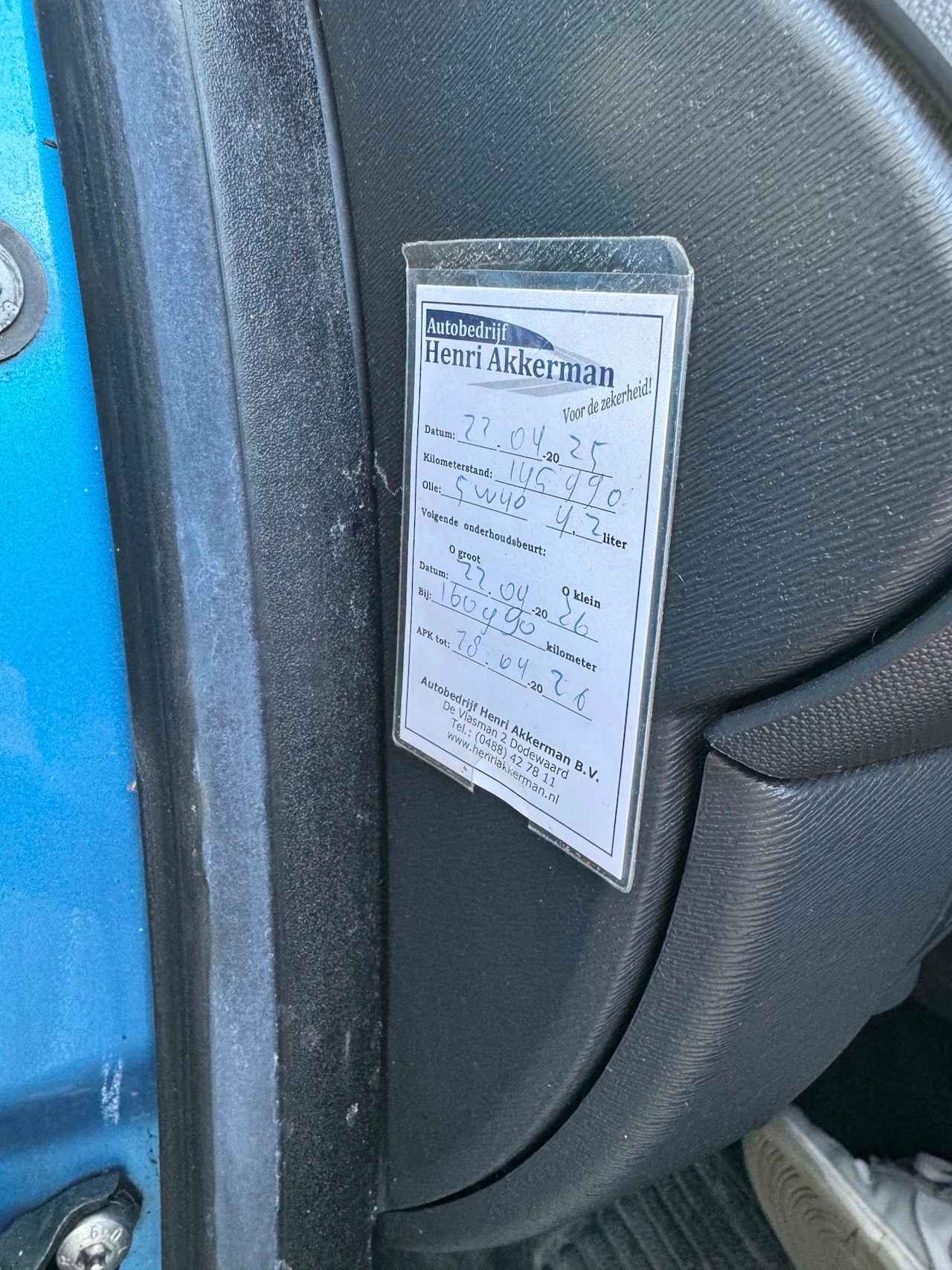 | APK | Bij aflevering |