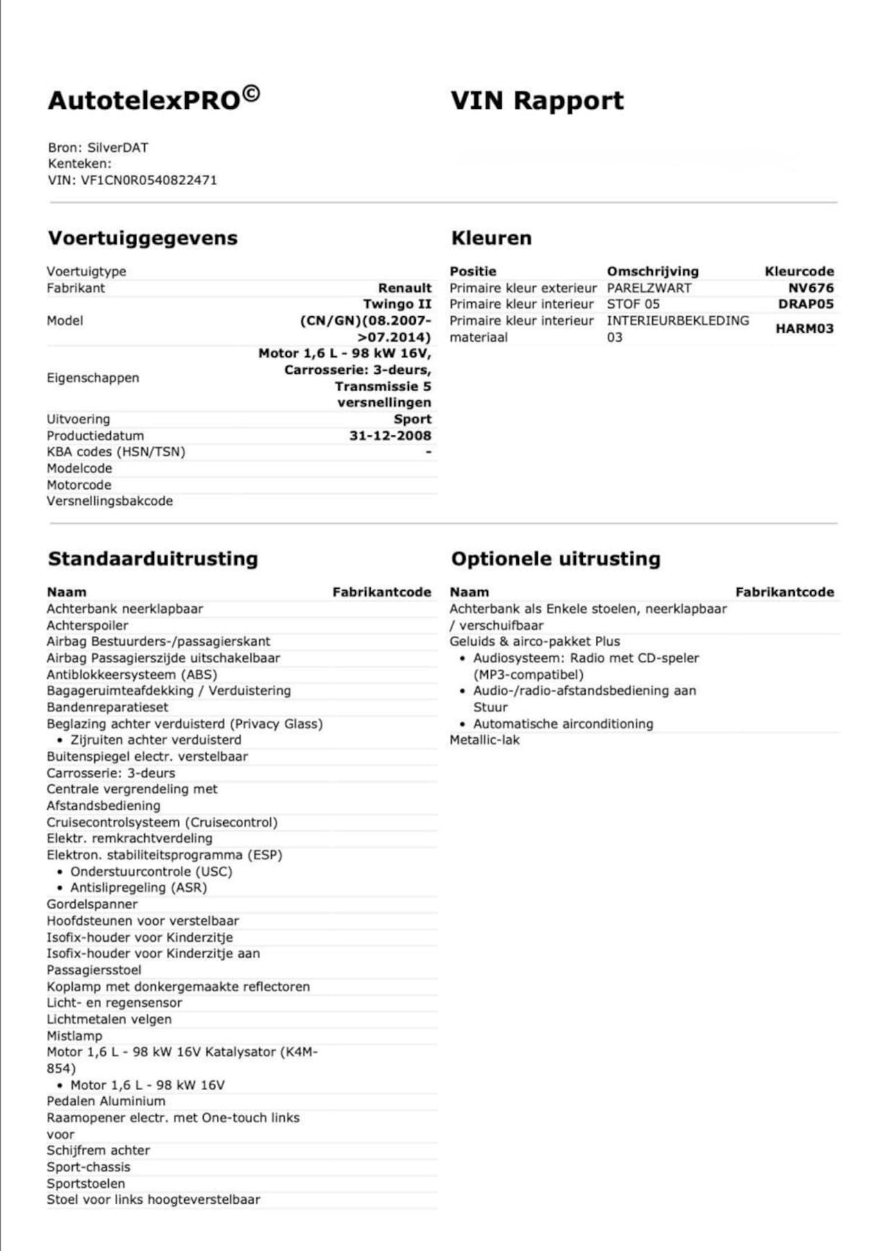01-2009, Benzine, Handgeschakeld, Hatchback, Zwart
