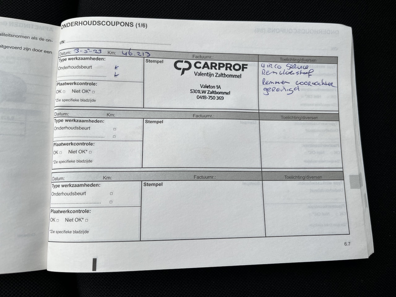 | APK | Bij aflevering |