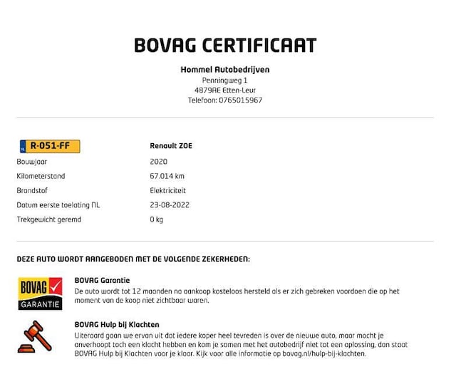 - BOVAG Garantie 12 maanden