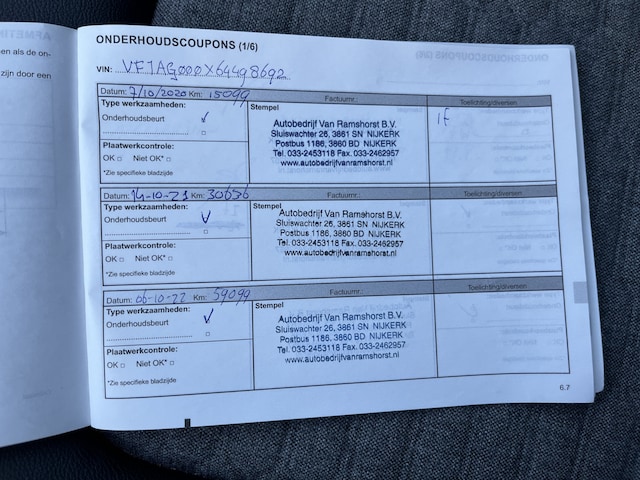 | APK | Bij aflevering |