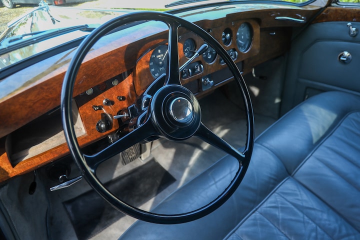 Dit specifieke exemplaar, gebouwd door James Young, werd als showmodel gepresenteerd op de Autosalon van Parijs in 1962, gehouden in de Porte de Versailles. Een setting die perfect bij deze Rolls paste. Van daaruit werd de Rolls-Royce geleverd aan de eerste eigenaren, de heer en mevrouw Washington, op hun landgoed in Mougins in het zuiden van Frankrijk. Die Franse oorsprong is vandaag de dag nog steeds zichtbaar, met details zoals de gele koplampen, Marshall parkeerlichten op de B-stijl en specifieke bumper overriders.