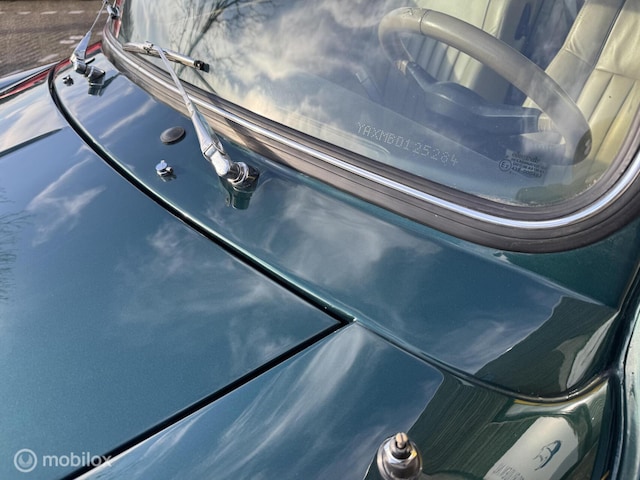 - De auto is opnieuw gespoten in de originele kleur British Racing Green. Het dakje is opnieuw bekleed.
