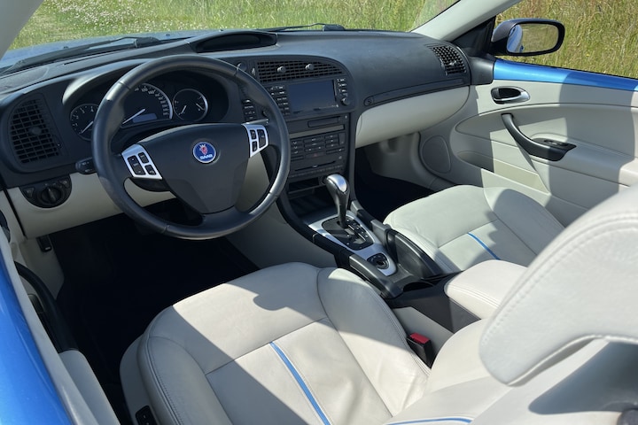 De fijne, soepele en krachtige turbo motor maakt deze Saab 9-3 een heerlijke cabriolet om mee te rijden zeker in combinatie met de automatische versnellingsbak. Het originele vermogen van 150pk is door middel van een Hirsch (Origineel Saab incl. certificaat) tuning naar 195pk gestegen, het originele koppel van 240nm is naar een behoorlijke 310nm gestegen. Deze mooie, chique, sportieve en onderscheidende Saab 9-3 Cabriolet is uitgevoerd in de zeer unieke kleurstelling Electric Blue metallic in combinatie met Lederen beige sportinterieur met biezen in de kleur Electric Blue! De 20 Years Edition is uitgebracht om het 20 jaar cabrio van Saab te vieren, de eerste cabriolet van Saab was de 900 Cabriolet. De verkoop begon in januari 1986. Een gelimiteerde oplage voor de Amerikaanse markt, 400 exemplaren met een 175 pk sterke 2.0-liter turbomotor, vloog weg. Het jaar daarop introduceerde Saab de Cabriolet wereldwijd. Twintig jaar en meer dan 240.000 verkochte Cabrioletten later verschijnt de Saab 9-3 Cabriolet 20 Years Edition in de unieke en speciale kleur Electric Blue!