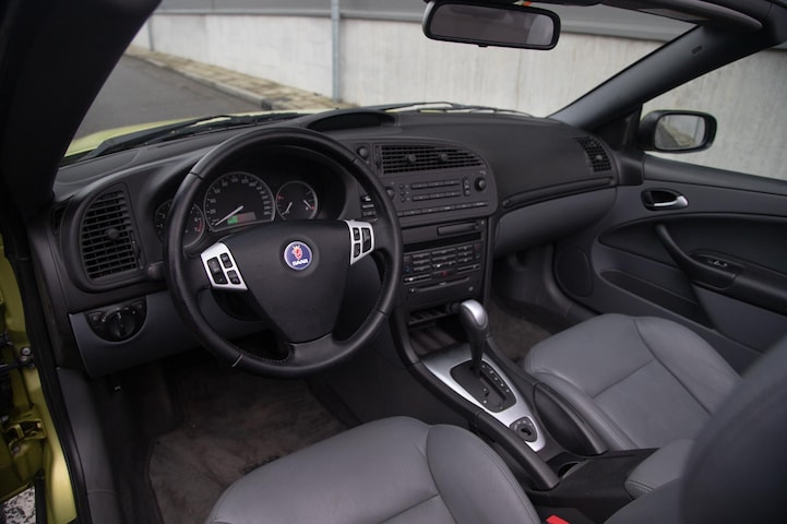 De 9-3 Cabrio biedt een tijdloos design, stevige carrosseriestructuur en het veiligheidsniveau waar Saab om bekendstaat. Het interieur is verzorgd met fraai donkergrijs leer en voorzien van onder meer stoelverwarming, automatische klimaatregeling, cruise control en stoelverwarming.