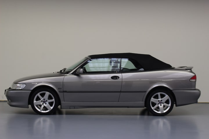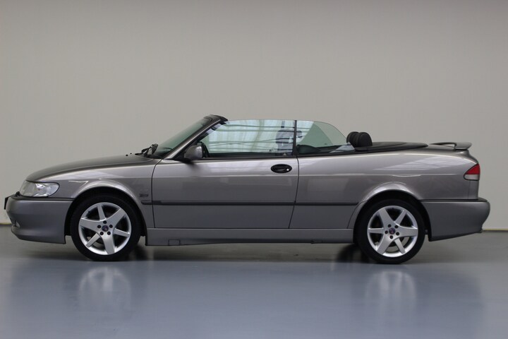 Deze Saab kan ook als Youngtimer zakelijk ingezet worden. De heerlijke rijdende Saab Cabrio in de chique kleur Steel Grey metallic met het zwarte lederen interieur verkeerd is mooie staat