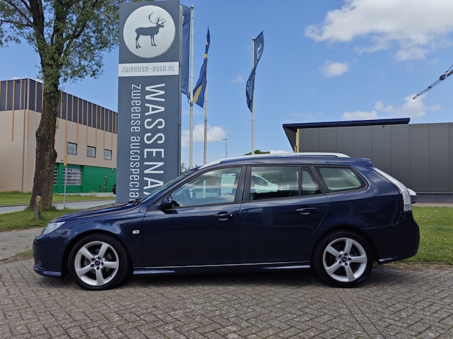 Saab 9-3 Sport Estate 1.8t 150pk Vector Biopower. Deze zeer compleet uitgevoerde Saab 9-3 Sport Estate is o.a. voorzien van: Volledig Lederen interieur met sport stoelen en elektrische verstelling op de bestuurdersstoel, Stoelverwarming, Saab audio systeem met 7 speakers, Climate controle, Cruise Controle, Parkeersensoren achter, Regensensor, 17-inch (ALU 45) Lichtmetalen velgen voorzien van All-Season banden, Roofrails mat Chrome, Automatisch dimmende binnenspiegel en buitenspiegels, Geïntegreerde mistlampen in voorbumper en Bi-Xenon koplampen met automatische hoogteregeling.