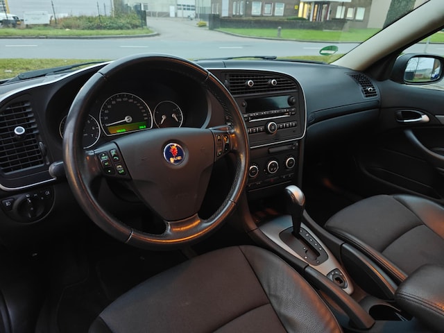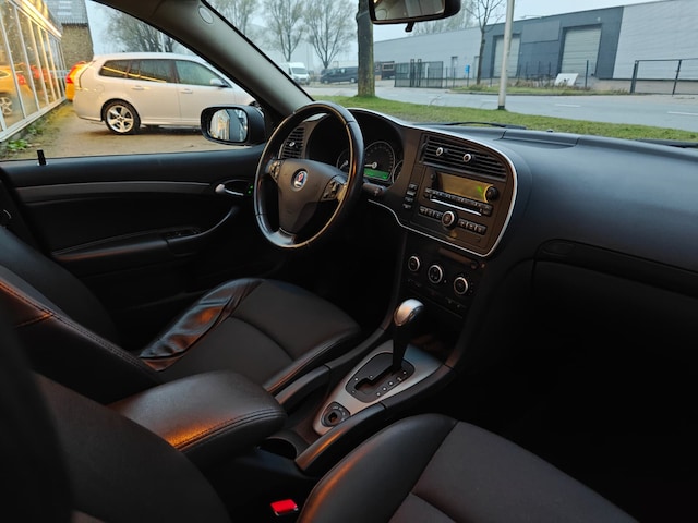 Saab 9-3 Sport Sedan 1.8t 150pk Norden Automaat. Deze prachtige goed onderhouden Saab 9-3 Automaat is o.a. voorzien van: Half lederen bekleding, Stoelverwarming, 16 Inch Lichtmetalen velgen voorzien van zomerbanden, Cruise control, Xenon verlichting, Climate control, Regen Sensor, Parkeersensoren achter en Saab Audio-/DVD navigatiesysteem 150 Watt en 7 speakers en een Trekhaak.
