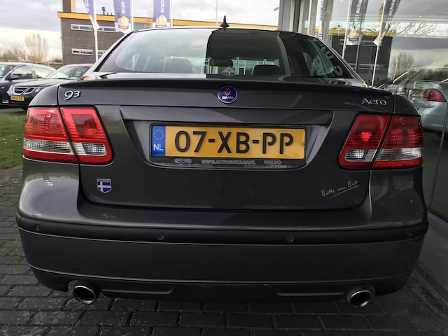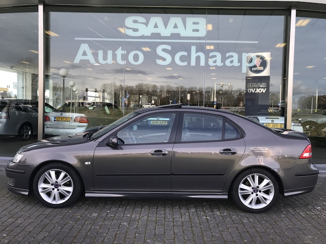 Saab 9-3 Sport Sedan 2.8T V6 Aero Anniversary automaat in de kleur Smoke Beige metallic. Voorzien van onder andere mistlampen voor, bi-xenon verlichting, schuif-/kanteldak af fabriek, 17 inch lichtmetalen velgen, achterspoiler, parkeersensoren achter, dubbele uitlaat, bekerhouder, cruise control, climate control, regensensor, lederen stuurwiel, elektrisch bedienbare voorstoelen en verwarmbare voorstoelen. Bijna volledig Saab dealer onderhouden, boekjes ter inzage. Bij ons in onderhoud vanaf 2011 tot 2020. Youngtimer regeling van toepassing!