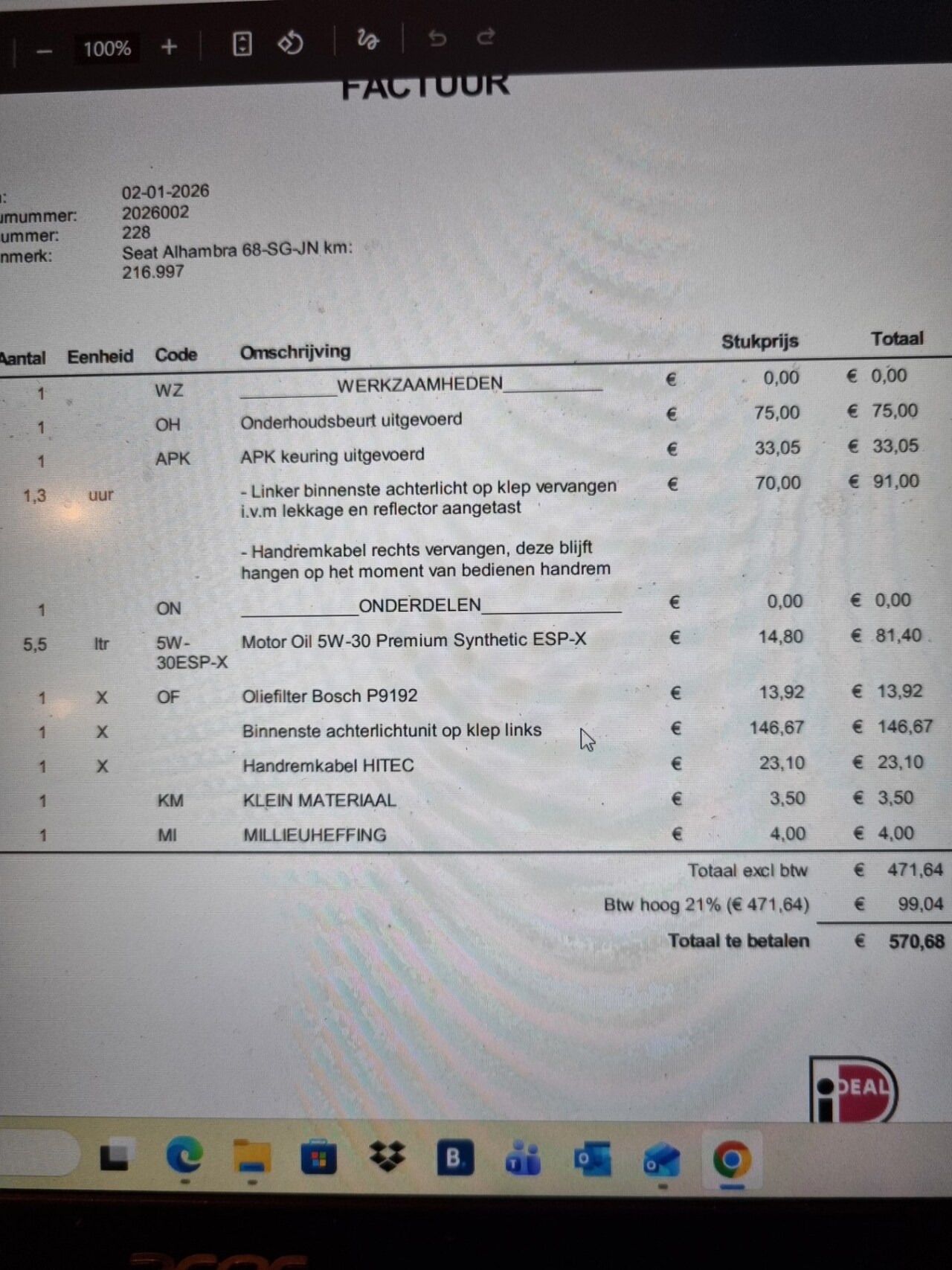 Bij aflevering