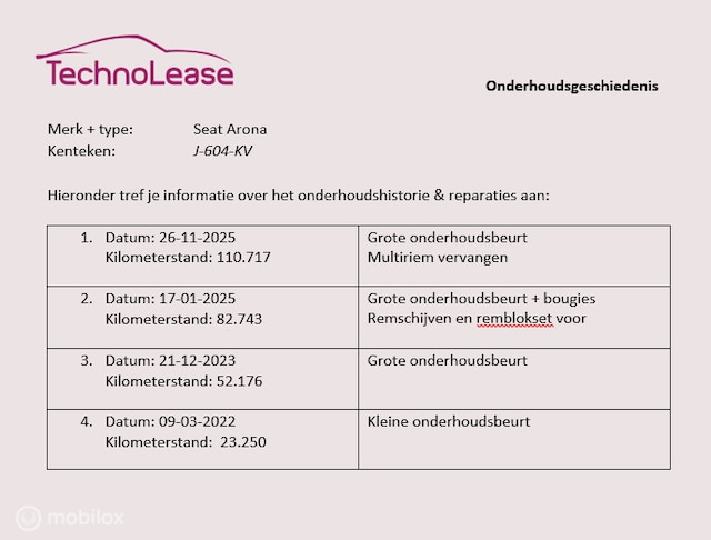 - De volledige onderhoudshistorie is bij ons bekend en gedocumenteerd.