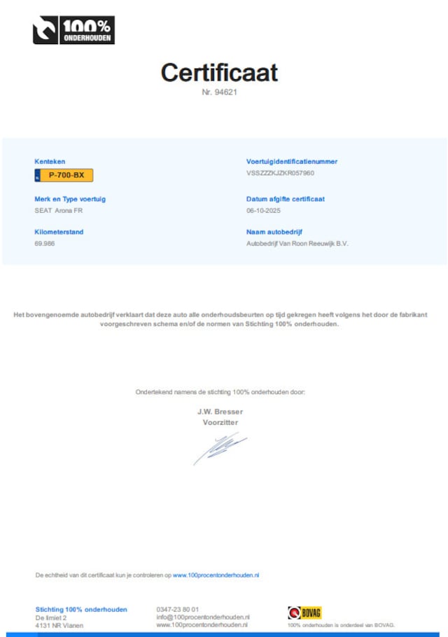 Dit afleverpakket bevat: BOVAG garantie (12 maanden); BOVAG Afleverbeurt; Autotrust garantie