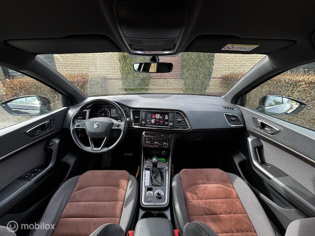 Parkeren gaat eenvoudig dankzij de achteruitrijcamera en het overzicht van de auto. Het interieur is netjes en die bijzondere bekleding geeft deze Ateca net dat beetje extra uitstraling.