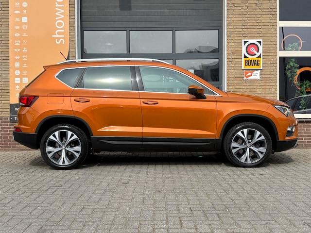 Zeer compleet uitgevoerde Seat Ateca 1.4 TSI 150PK DSG AUTOMAAT XCELLENCE uit 2017 in de speciale kleur Samoa Orange. Originele NL-Geleverde auto. Voorzien van o.a: Airco-Climatecontrol, Stoelverwarming voor, Adaptieve Cruisecontrol, Lane Assist, Elektrische achterklep, Multimediasysteem met Navigatie, Bluetooth, DAB+ Tuner, Apple Carplay/Android-Auto, Parkeersensoren voor+achter met Achteruitrijcamera, Standkachel, Getint Glas, Boekjes en 2 sleutels compleet aanwezig.
