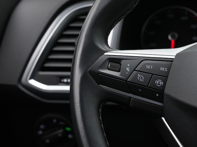 Achter het stuur ervaar je direct het prettige en overzichtelijke karakter van deze Ateca. De comfortstoelen met lendesteunen bieden goede ondersteuning, en dankzij de automatische airconditioning blijft het binnenklimaat altijd aangenaam. Adaptieve cruise control maakt langere ritten rustiger en relaxter, terwijl parkeersensoren rondom, de achteruitrijcamera en automatische inparkeerhulp zorgen voor extra gemak in de stad.