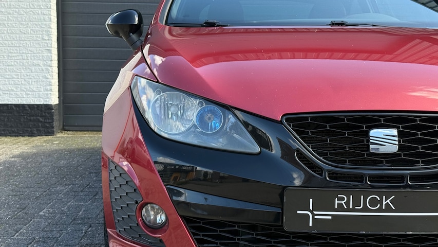 Te koop aangeboden een zeer sportieve en unieke Seat Ibiza Cupra Bocanegra uit 2010 uitgevoerd in rood metallic met zwarte accenten en velgen wat zorgt voor een onderscheidende en agressieve uitstraling