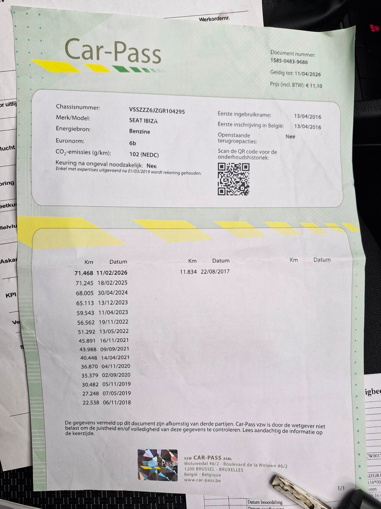 | APK | Bij aflevering |