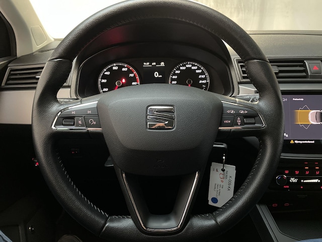 Bij het inparkeren hoef je het laatste stukje niet te gokken: de achteruitrijcamera kijkt voor je uit. Onderweg kun jij veilig genieten van het audiosysteem en het navigatiesysteem. Want in deze Seat bedien je ze vanaf het stuurwiel of met jouw stem. Natuurlijk is er ook automatische airconditioning aanwezig. Om de veiligheid onderweg te verhogen, heeft deze Seat zowel een automatisch inschakelbare verlichting als een regensensor aan boord, zodat hij zelf de verlichting en de ruitenwissers kan inschakelen. De voordelen van de aanwezige cruise control hoeven we niet uit te leggen. Een mooie, constante snelheid - niet te snel, niet te langzaam. Precies goed. Extra opties op deze auto zijn: automatisch dimmende binnenspiegel, lederen stuur, centrale deurvergrendeling met afstandsbediening, boordcomputer en lederen versnellingspook.