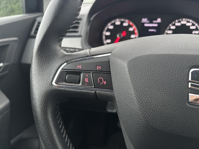 Tot de standaard uitrusting van deze auto hoort ook automatische airconditioning. Al uw favoriete radiozenders letterlijk onder handbereik: dat kan met audiobediening op het stuur. Met de aanwezige parkeersensoren weet u altijd zeker of het past. In deze Seat kunt u zich concentreren op het verkeer, terwijl de auto de omgeving voor u in de gaten houdt. Een automatisch inschakelbare verlichting zorgt dat de verlichting aangaat als het donkerder wordt - in tunnels bijvoorbeeld - en de regensensor schakelt de ruitenwissers in als het nodig is. U hoeft er niets aan te doen. Ook fijn als u op de voorgeschreven snelheid wilt blijven: de cruise control. U bent in deze Seat ook voorzien van automatisch dimmende binnenspiegel, lederen stuur, centrale deurvergrendeling met afstandsbediening, boordcomputer en lederen versnellingspook.