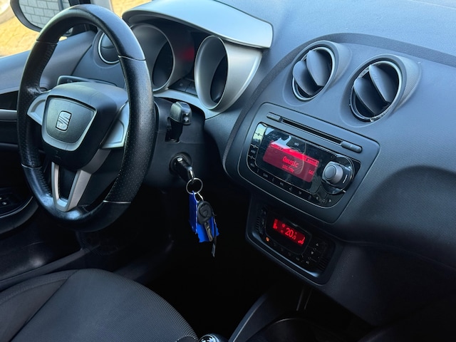 Volume aanpassen, andere radiozender? U bedient het audiosysteem veilig en handig met de functies op het stuur. Natuurlijk is deze Seat Ibiza voorzien van cruise control. En natuurlijk is er ook gedacht aan airconditioning. Ook buitentemperatuurmeter, lederen stuur, centrale deurvergrendeling met afstandsbediening, boordcomputer en lederen versnellingspook zijn aan boord.