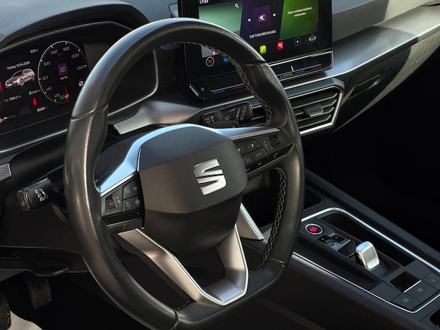 Deze SEAT Leon Sportstourer 1.0 eTSI DSG uit 2022 is een moderne en ruime stationwagen met een efficiënte 110 PK benzinemotor voorzien van mild-hybride (48V) ondersteuning. Dit systeem ondersteunt de motor tijdens het rijden en zorgt voor een lager verbruik en een soepelere rijervaring, zonder dat u hoeft te laden of een stekker nodig heeft.
