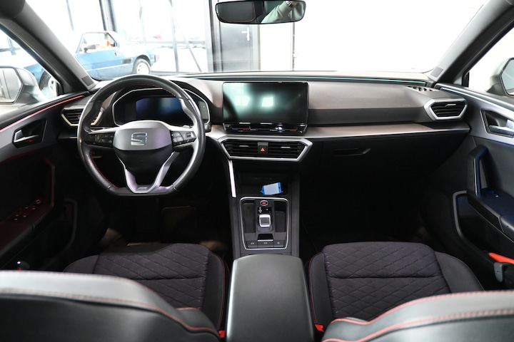 Het digitale dashboard geeft een nauwkeurig en makkelijk overzicht van alle belangrijke functies. Adaptive cruise control houdt de ingestelde snelheid vast en houdt afstand tot het voertuig voor u. De meest gebruikte voertuigfuncties laten zich met behulp van uw stem bedienen. Nooit meer de weg kwijt: daarvoor zorgt het onboard full map navigatiesysteem. Kom-maar-kom-maar...ho! Zo eenvoudig is het voordeel van parkeersensoren. En zo behulpzaam! Deze SEAT is voorzien van regensensor, sportstuurwiel, airco achter, automatisch dimmende binnenspiegel, centrale deurvergrendeling met afstandsbediening en lederen versnellingspook.