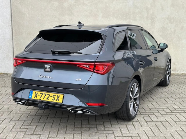 Autohuis Ter Laare biedt deze SEAT Leon FR Sportstourer 1.5 eTSI aan in de kleur Magnetic Tech Grey Metallic. Deze Leon, met DSG-transmissie, is uitgevoerd met opties waaronder een virtual cockpit (Active Info Display), Full Map navigatiesysteem met Bluetooth (bellen en muziek streamen), wireless Apple Carplay/Android Auto, DAB+, parkeercamera, elektrisch wegklapbare trekhaak (inclusief witte kentekenplaat), 230V aansluiting, zwarte dakhemel, 3x isofix, keyless go/entry, sfeerverlichting, LED koplampen, achterlichten & mistlampen, DCC dynamisch onderstel, verlichte FR instaplijsten, 3-zone climate control, adaptieve cruise control i.c.m. lane assist, privacy glass, meerdere USB-C laadpunten, multifunctioneel lederen stuurwiel met F1-flippers, elektrisch inklapbare zijspiegels en een automatisch dimmende binnenspiegel i.c.m. licht-/regensensor.