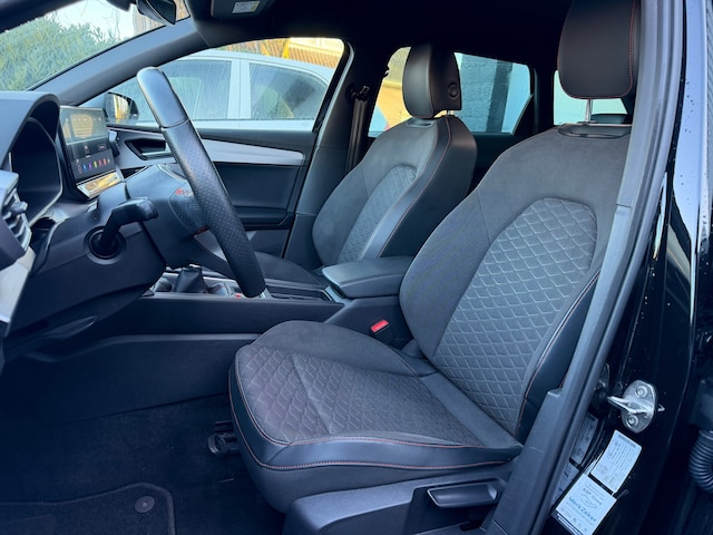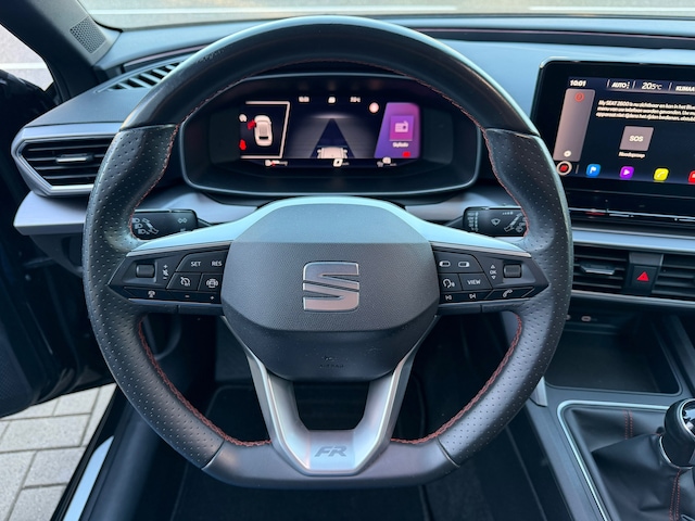 De auto is uitgevoerd in stijlvol zwart en beschikt over de populaire FR Launch Edition, wat zich uit in sportieve accenten en een rijk uitgeruste uitvoering. Zo is de Leon voorzien van Adaptieve Cruise Control, waardoor lange ritten extra comfortabel worden, en een modern Virtual Cockpit dat alle rij-informatie haarscherp digitaal weergeeft. Via Apple CarPlay sluit u eenvoudig uw smartphone aan voor navigatie, muziek en communicatie.