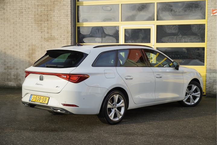 SEAT Leon Sportstourer met de zeer luxe aanwezige opties als Lichtmetalen velgen | Led dagrijverlichting | Led koplampen | Led achterlichten | Led mistlampen | Parkeersensoren | App-Connect | Dashboard verlichting | Navigatiesysteem | Virtual cockpit | Climate control | Cruise control | Sportstoelen | FR-Stuurwiel | Zwarte hemel | Extra getint glas | Nieuwe model!