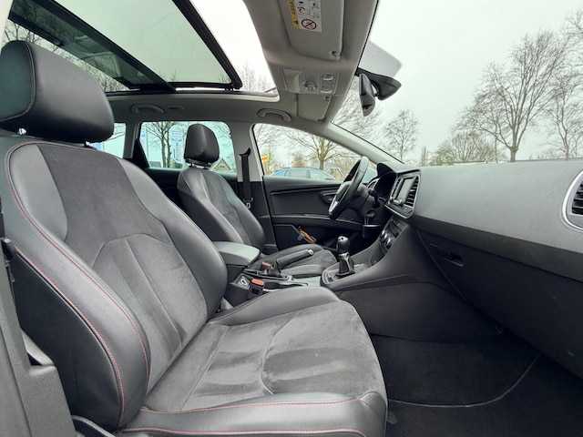 Sportieve en complete Seat Leon ST in de luxe FR Connect uitvoering. Uitgerust met een panoramadak, LED-verlichting en trekhaak, wat zorgt voor zowel comfort als uitstraling. De krachtige 1.4 EcoTSI motor met 150PK biedt een fijne combinatie van prestaties en zuinig rijden.