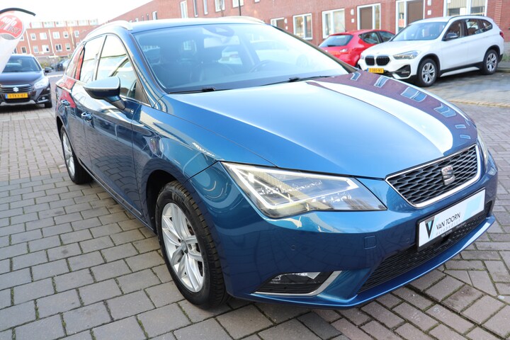 Seat rijden is een kwestie van gevoel, gebouwd op vooruitstrevende techniek. Dat noemen ze nou auto emocion. Hij heeft een benzinemotor en een automatische transmissie. De lederen bekleding geeft het interieur een rijke en luxe uitstraling. 's Winters op pad gaan kan een behoorlijke uitdaging zijn. Daarom is deze SEAT Leon ST voorzien van weldadige verwarmbare voorstoelen. U blijft ook in de scherpe bochten goed ondersteund door de fraaie sportstoelen. Een heerlijk zonnetje, of indrukwekkende wolkenpartijen? Bekijk ze onbelemmerd door het elektrisch bediende glazen panoramadak. Ook 16 inch lichtmetalen velgen, LED koplampen, donker getint glas achter, in delen neerklapbare achterbank, LED-achterlichten en verstelbare lendensteunen zijn aan boord.